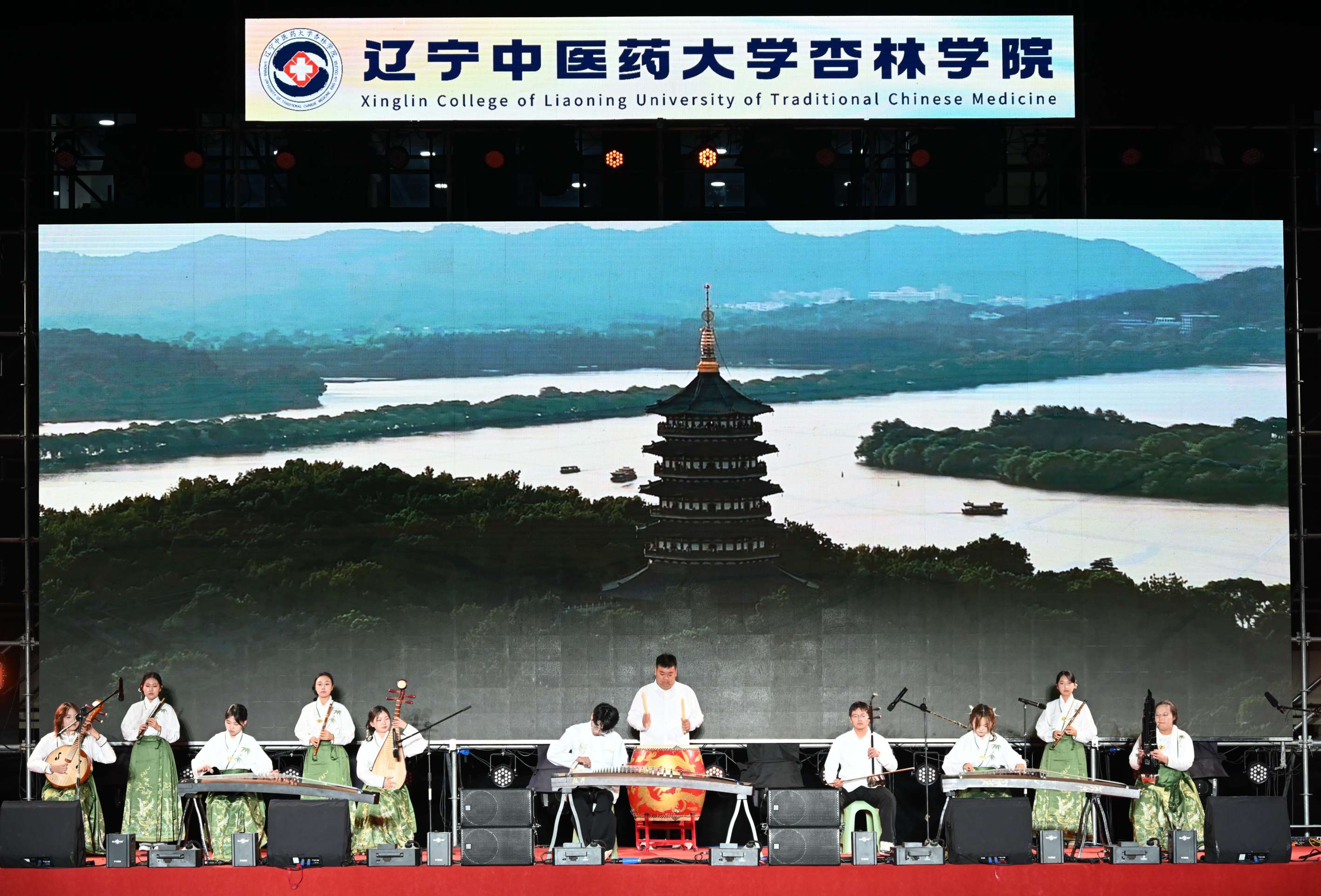 由校艺术团民乐部带来的《明月引》弦动宫商,笛引羽徽。当第一声清音划破寂静,便如一轮明月悠然升上中天,澄澈的银辉漫过千年时光。曲调蜿蜒流淌,仿佛一位慈祥的智者,正将中医药文化的古老血脉,一点一滴,注入新一代杏林学子的心田,建立起一场跨越时空的默契对谈。